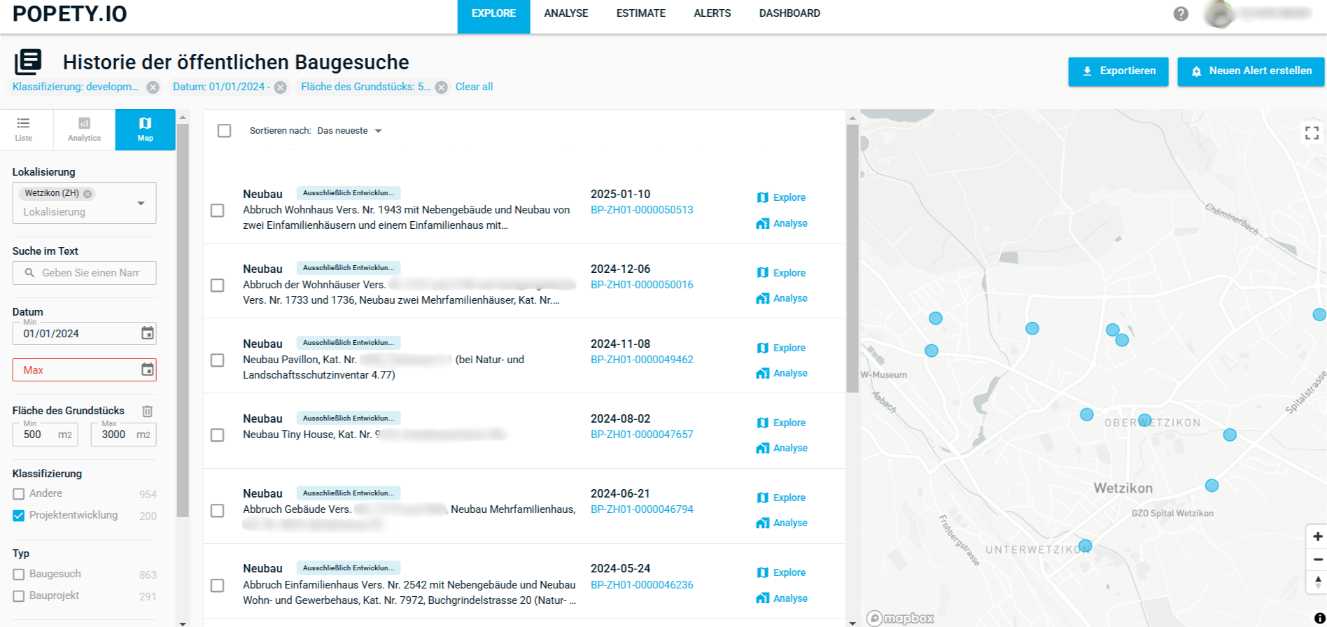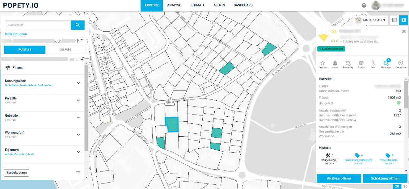 ✔ Grundstücke mit hohem Entwicklungspotenzial schnell identifizieren, dank intelligenter Filter und Karten