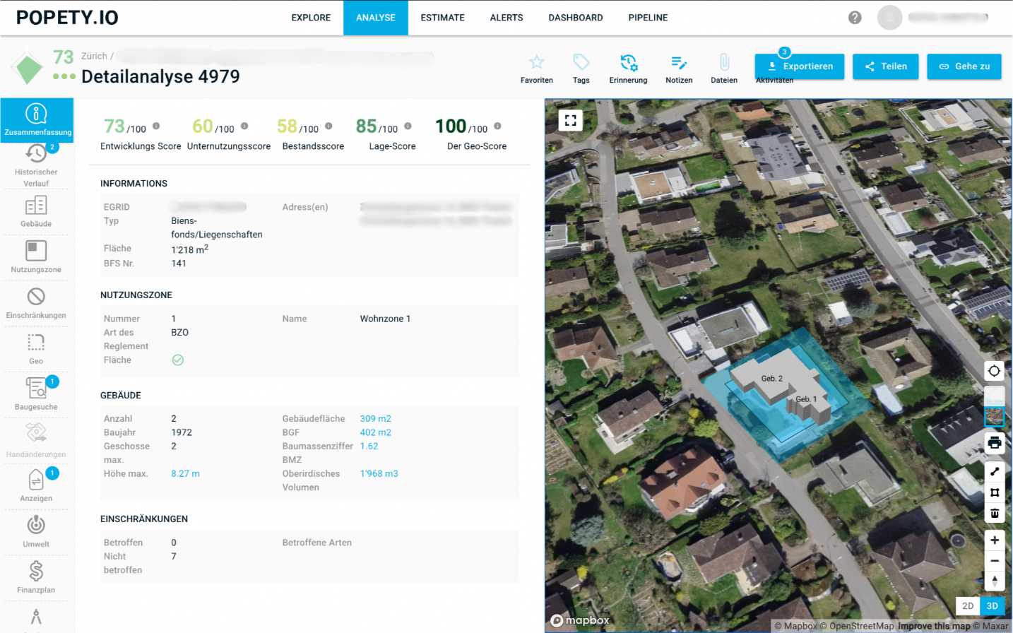 „Mit Analyse erhalte ich einen klaren Überblick über die Parzellen und Gebäude, so dass ich die besten Gelegenheiten erkennen und fundierte Entscheidungen treffen kann. Ein unverzichtbares Werkzeug!“